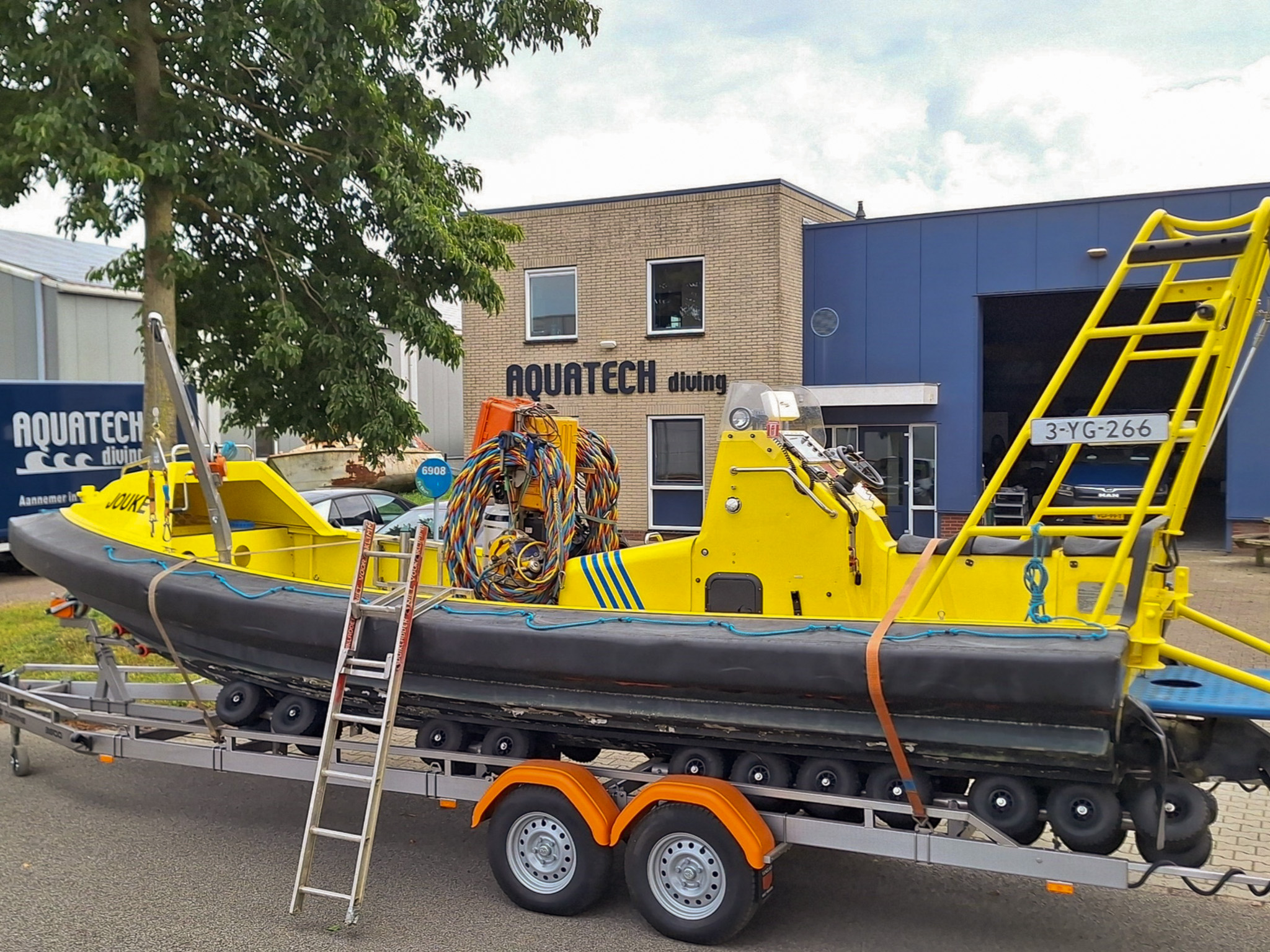 The “Jouke” is a versatile vessel within the Aquatech Group fleet, originally built as an offshore fast rescue craft (Alusafe 770 FRB) and well suited for harbour and coastal operations. Its robust design, high manoeuvrability and speed make the “Jouke” ideal for diving support, inspections and light offshore activities. The vessel can be equipped with a diving system, including a Scuba Replacement System (SRS), and is fitted with a diving ladder and rescue davit for safe deployment and recovery. A dedicated trailer is available for easy road transport.